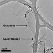 石墨烯,一種只有一個原子厚的二維碳膜,這種新型材料化學(xué)性能穩(wěn)定,很難與其他物質(zhì)結(jié)合,石墨烯是目前發(fā)現(xiàn)的硬度最大的物質(zhì),有極好的導(dǎo)電和導(dǎo)熱性能,這些性能使得石墨烯極適于制作電鏡載網(wǎng)支持膜,為TEM觀測納米粒子提供了極大的方便,對進行納米粒子界面研究者非常有幫助,尤其是納米顆粒較小且附著力較差時可以使用這種特制的電鏡載網(wǎng)。