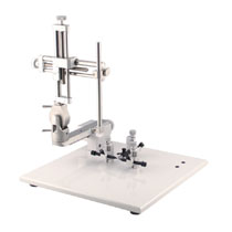 Stoelting創(chuàng)造性在的一個基座上放置兩個定位單元,每個單元都帶有獨立的耳棒。通過引導螺紋,操作臂可以控制左右和上下方向的移動;前后控制通過楔形榫頭來進行,在每個方向上都可以移動80mm 。耳棒的高度可以獨立調節(jié),垂直方向的刻度采用了激光雕刻技術,能夠非常新晰的讀出耳棒的高度。輕質的聚甲醛樹脂耳棒,前端逐漸變細;特殊設計的下頜夾持器;非植入性橡膠頭。