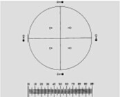 G57是目鏡分劃板的一種,主要應(yīng)用于制藥行業(yè),用于篩選和分析樣本中的顆粒物,檢測顆粒物的分布狀態(tài)。當(dāng)樣本顆粒直徑小于50µm或者顆粒數(shù)量在一定范圍內(nèi)時(shí),G57適合做粒徑大小的分析。G57分劃板上的黑圓點(diǎn)和空心環(huán)分別代表顆粒直為10µm和25µm兩種,可作為與顆粒比對的參考。此外,一個(gè)帶刻度的水平比例尺也整合到其中。